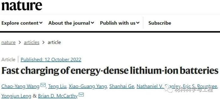 具有富鎳層狀氧化物正極和石墨負(fù)極的鋰離子電池已達(dá)到250-300 Wh kg-1的比能量,可以支持裝配90 kWh電池組的電動汽車(EV)達(dá)到300英里的續(xù)航范圍。不幸的是,由于原材料供應(yīng)有限且成本較高,使用如此龐大的電池來緩解主流EV的里程焦慮是無效的。10分鐘快充技術(shù)可以縮小EV電池的尺寸,且不會引起里程焦慮。然而,高能鋰離子電池(超過250 Wh kg-1或高于4 mAh cm-2)的快速充電仍然是一個巨大的挑戰(zhàn)。