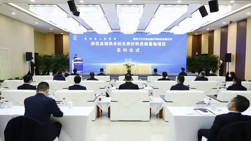 12月12日,“天目先導新型高端納米硅負極材料西南基地項目”簽約儀式在成都彭州市舉行。此次簽約總投資達50億元,擬建設年產(chǎn)3000噸高端納米硅材料、10萬噸高端硅基負極材料和3萬噸新型納米硅材料西南生產(chǎn)基地,項目達產(chǎn)后預計年產(chǎn)值約90億元。