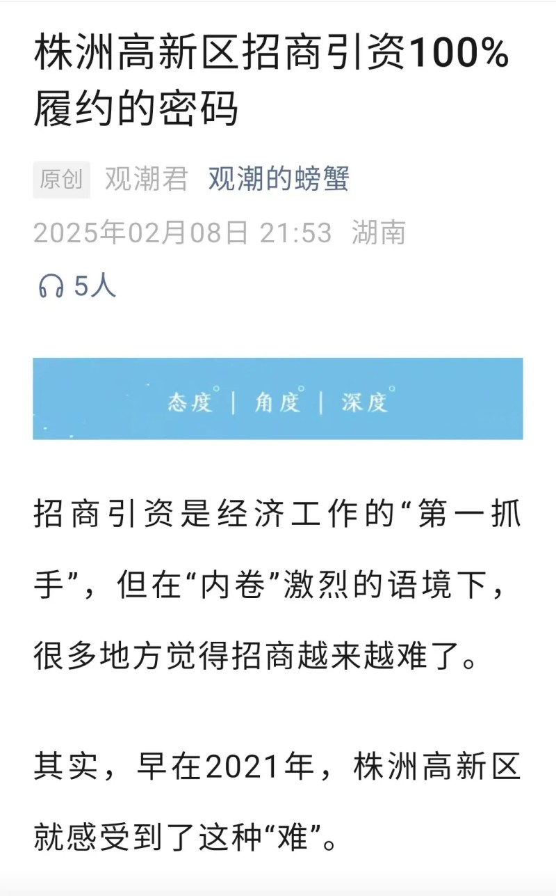 詳見報道→《紅網報道高新區——株洲高新區招商引資100%履約的密碼》